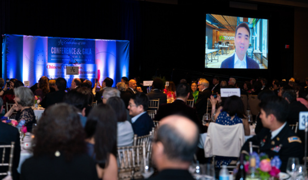 Eric S. Yuan, Founder and CEO of Zoom and Committee of 100 Member, was awarded the Committee of 100 Distinguished Service Award for Advancing Human Connectivity. As the world takes shape around this new Covid-era we are all living in, Zoom stood out as a model of productivity, creativity and ingenuity. Founder Eric S. Yuan helped unite the world in a time of crisis, helping to keep business moving, and bring families, friends and loved ones together. The award was presented by Conference and Gala Co-Chair Robert W. Gee, Founder Partner of AME Cloud Ventures, Co-Founder of Yahoo!, and Committee of 100 Member Jerry Yang.