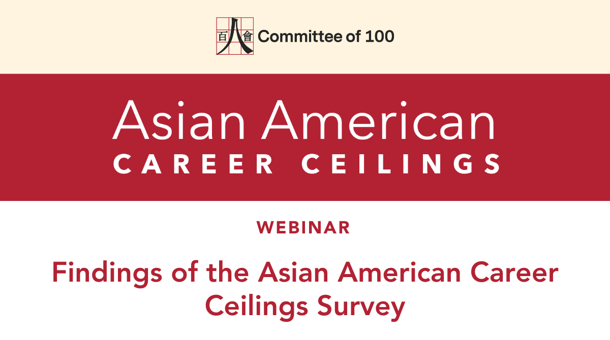 Join Committee of 100’s Asian American Career Ceilings Initiative as it unveils key findings from the Asian American Career Ceilings Survey. Peter Young, Chair of the Asian American Career Ceilings Initiative and Committee of 100 Member, will lead a 30-minute presentation of the results, followed by a 15-minute audience Q&A.